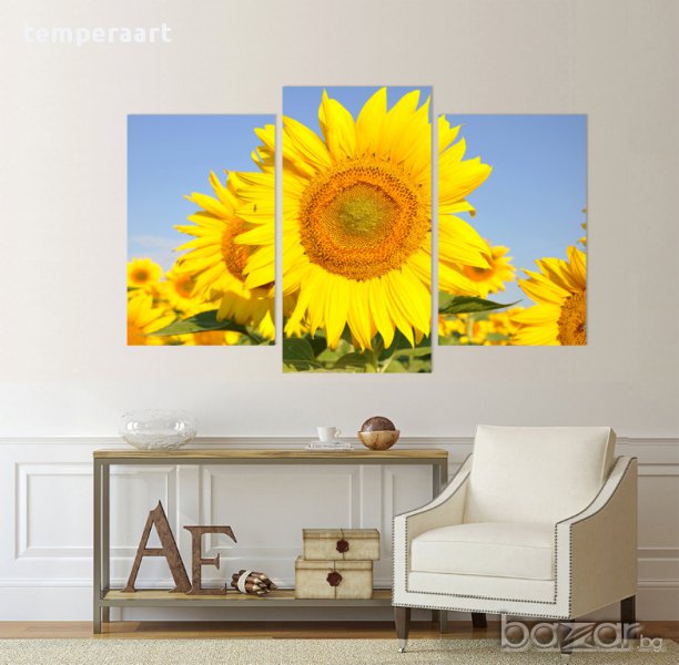 Картина Слънчогледи, картинно пано, картина цветя, канава, декоративно пано от части № 070