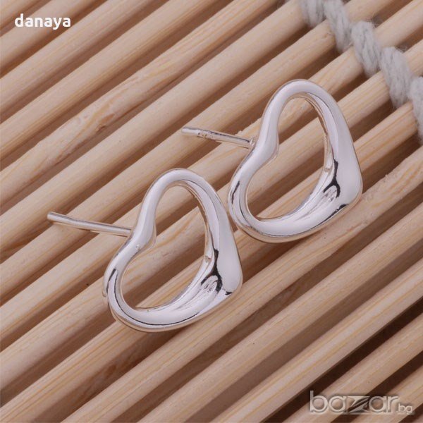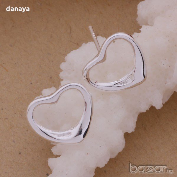 Комплект бижута сребърно покритие 925 Silver Обеци с винчета Колие Сърце