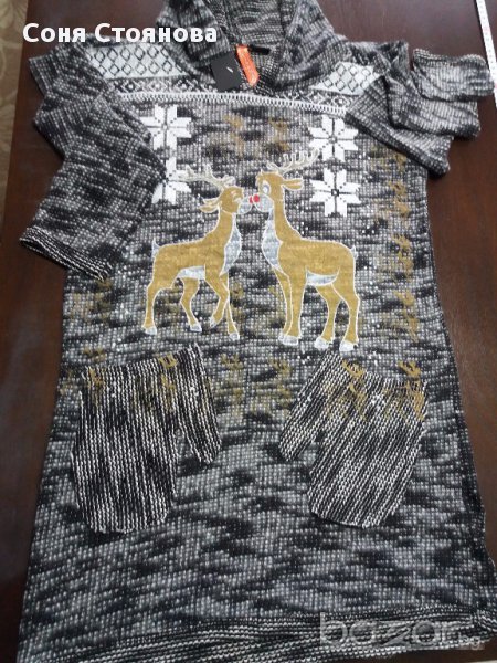 Дамска туника М влюбени еленимного е красива и топлаима качулкас две джобчета отпреднова, с етикетподходяща за подарък