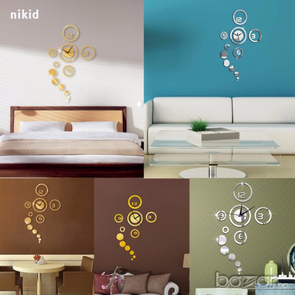 цветен стенен часовник уникален атрактивен дизайн 3D с кръгове стена