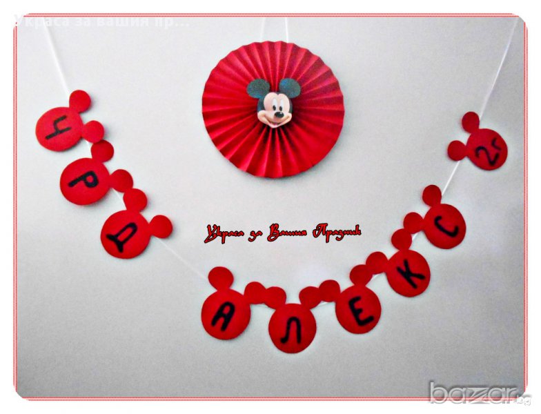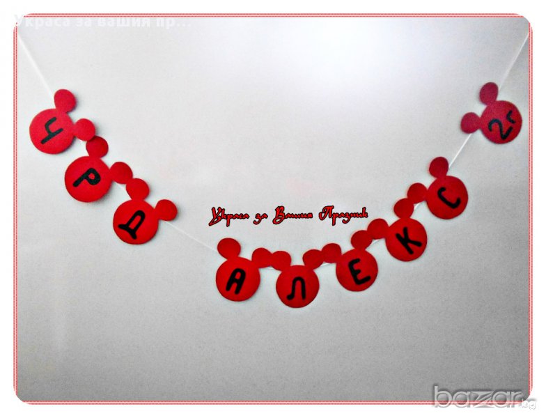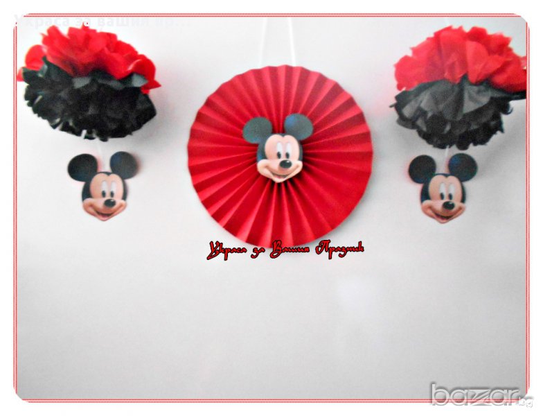 покани * надпис ЧРД + името на детето * топки от тишу с висящи герои *