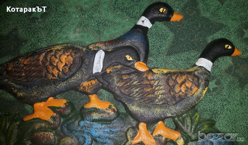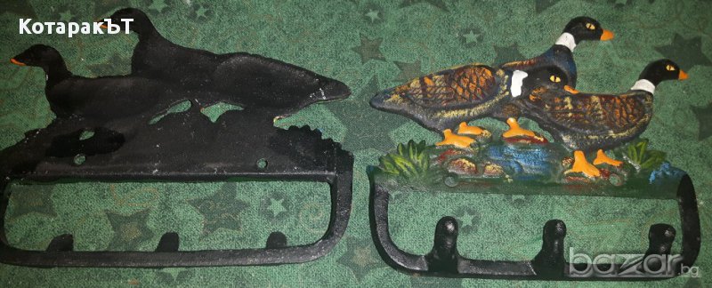 Уникален старинен комплект метални закачалки - ръчно оцветени Патици. ЛОТ - 2 бр.