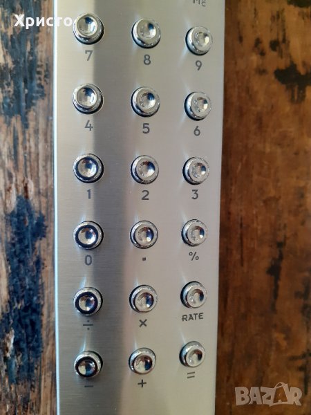 Калкулаторът е 10 разряда и различни функции, работи с батерии LR 44
