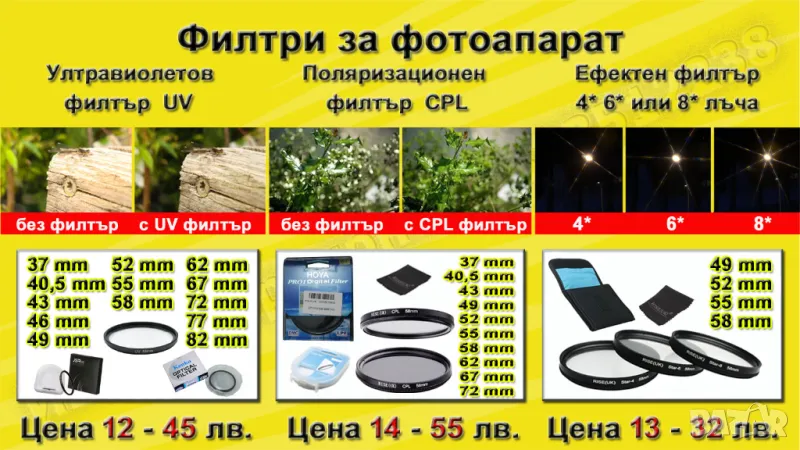 3. Ефектен филтър 4*, 6* или 8* лъча - 52 и 58 мм