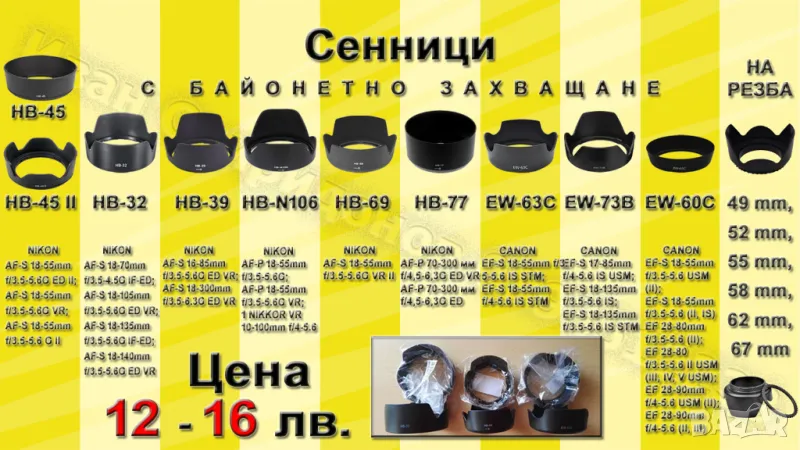 69 x 49 мм - 600D, Rebel T3i, Kiss X5 - 12 лв.