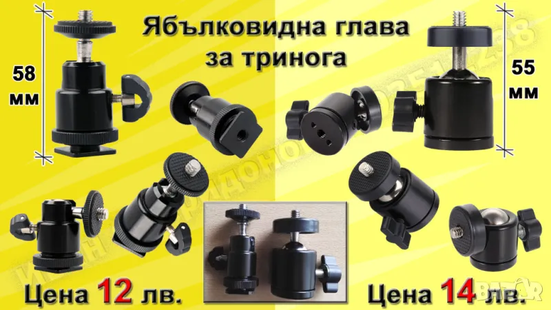 Подходяща за закрепване на фотоапарат, светкавица и други аксесоари с резба 1/4".