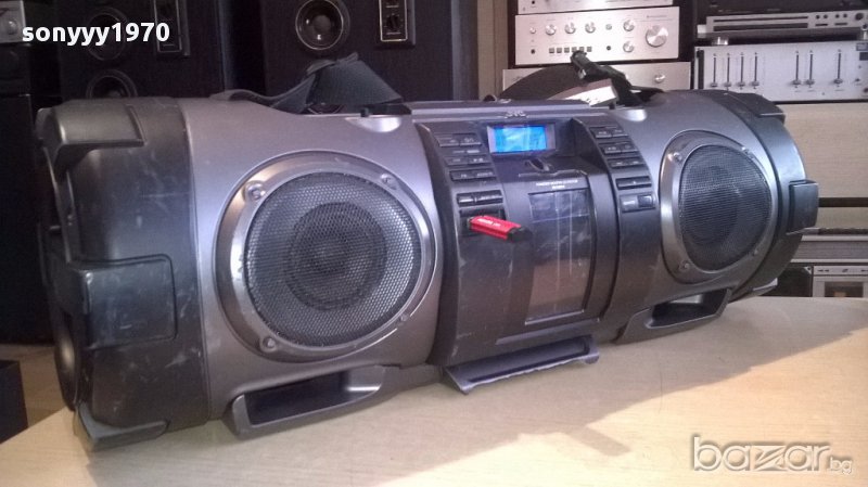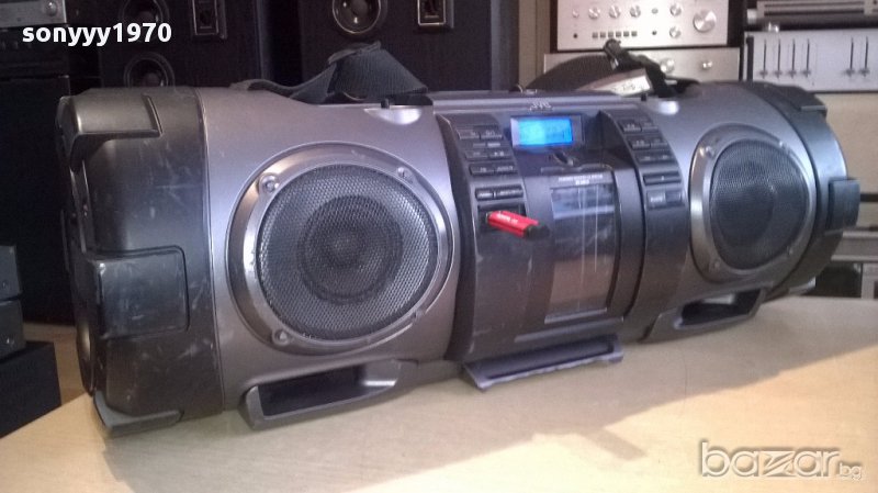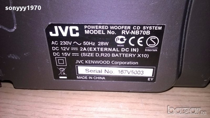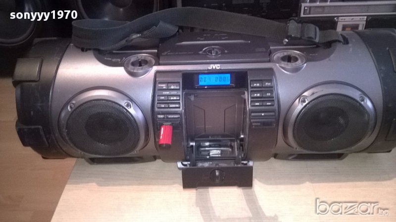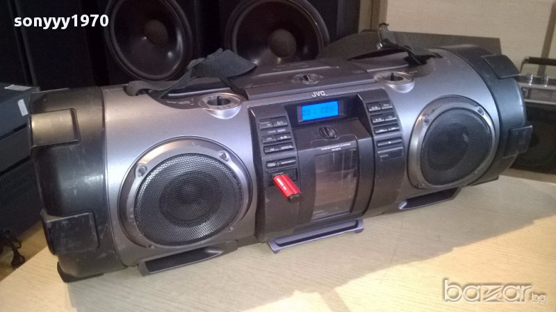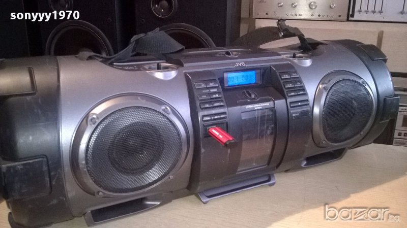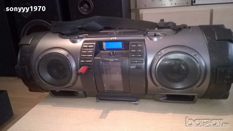 Jvc rv-nb70b usb/cd/iphone/aux/mic/gitare powered woofer from uk...огромен звяр а само как свири...блъска бас до откат...работи всичко и диск и флашка и радио и микрофонен и китарен вход...има и за аифон...липсват две врътки и капака за батерии-таи пристигна...внесен е от англия вчера има басове в двете страни...работи на 220в и на 12в или на батерии-пращаме със спиди или еконт с преглед и тест след превод на капаро за куриерската услуга поради зачестили некоректни потребители-поръчки само тук в саита! по телефона и със смс не! краини цени! бартери не правиме! ПАРИ НЕ ВРЪЩАМЕ! всеки ден нови неща-още 2-3 наши обяви тук