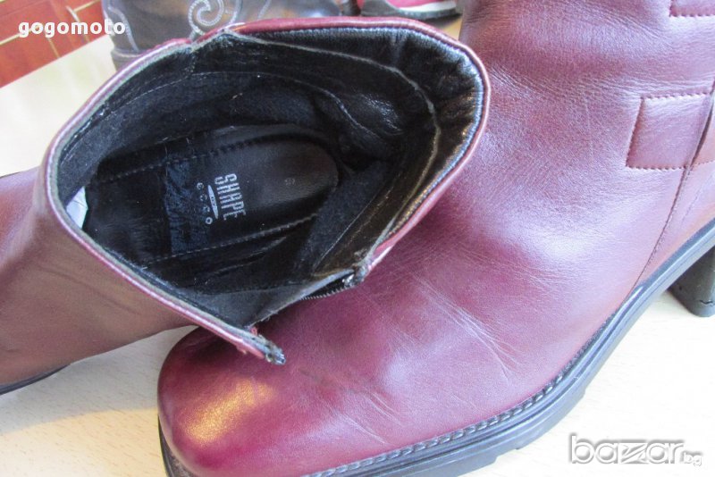 Номера по етикет е EUR- 39, UK- 6, US- 8.5 , а СТЕЛКАТА е 25 см. дамски вишневи боти, ECCO® by SHAPE original, N- 39, 100% висококачествена естествена кожа, GOGOMOTO.BAZAR.BG® - добре запазени, малко употребявани , БЕЗ забележки. Без скъсано, без разлепено, без разшито! Моля, имайте в пред вид, че снимките са правени от 20 см., за да са максимално подробни, качествени, а обикновено обувките се гледат от 2 м.