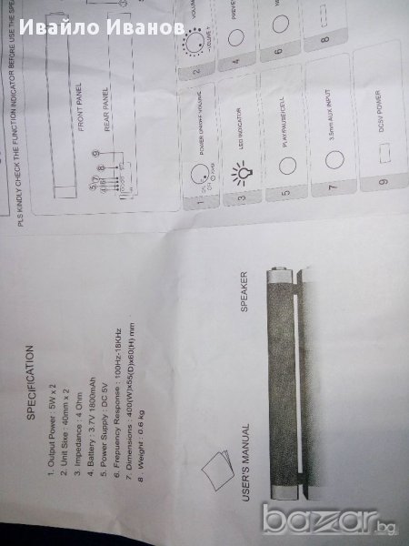 #караоке блутуут саундбар + MP3 плеър USB , MicroSDcard четец +FMрадио ,li-ion battery -1800mAh,