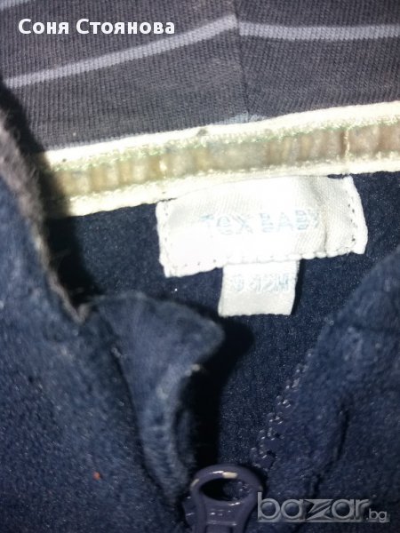 9-12м 80см Горница за момче Tex baby с качулка  Материя полар Цвят тъмно синьо  Без следи от употреб → Обява 17061243