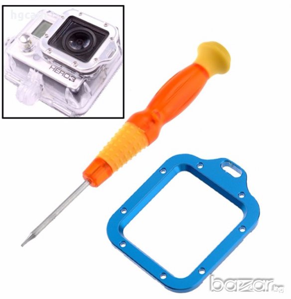 Металният протектор/ринг предпазва канта/ръба на лещата/обектива на защитния корпус на вашата камера от механични наранявания. Той е по-здрав и устойчив от оригиналния, който е пластмасов. Едновременно с това вашето GoPro 3 ще изглежда много по- стилно от всяка друга камера около вас. Аксесоарът се поставя върху лещата на защитния корпус на камерата като преди това стария пластмасов ринг се демонтира. Болтчета за монтаж не са включени в комплекта(ползват се оригиналните). За да демонтирате и монтирате болтовете се нуждаете от отвертка с нужната големина за целта. Затегнете болтовете здраво към предпазния корпус. Приверете за нанесени щети, пукнатини, незатегнати болтове, хлабини и т.н. при процедурата. Преди да използвате вашият водоустойчив корпус с поставена в него камера, потопете кейсът празен на желаната дълбочина. Проверете за течове по него.