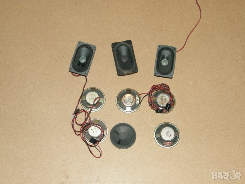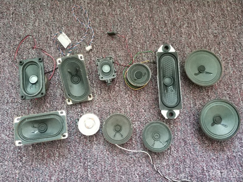 Високоговорители вадени от стари компютри и телевизори.