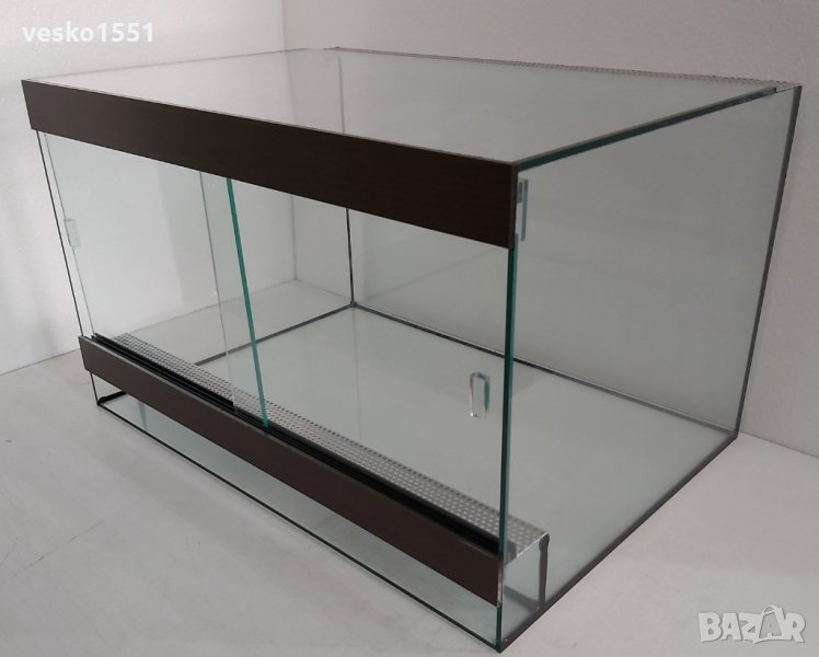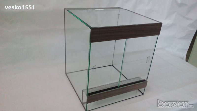 Терариумите са с отвори за вентилация от метална мрежа и плъзгащи стъкла.