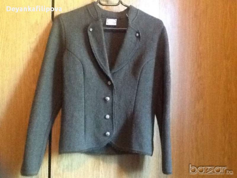 Продавам дамски костюми:Сн.1-розова блуза новаМ-30лвСако розово каре-25лвсн2-Вълнено сако тъмна зелено тип букле-25лвсн3-дамски вълнен костюм , сиво рае-пола панталон и елек, новоS,25лв