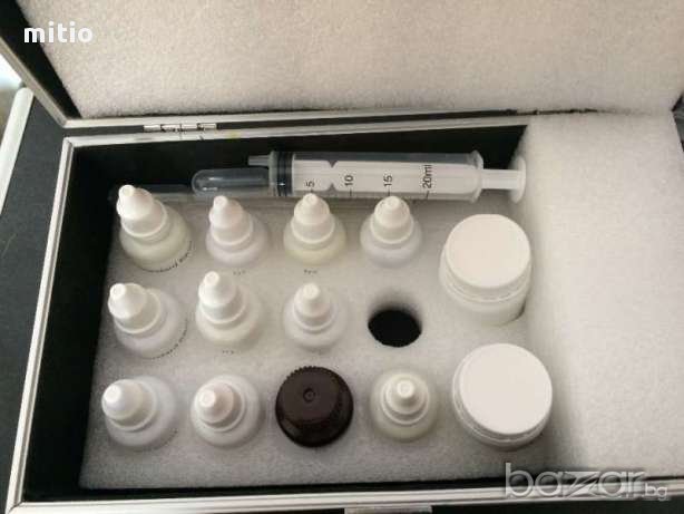 Анализатор - 1 бр Кутия с реагенти - 1 бр Електрод за pH - 1 бр Електрод за соленост ( кондуктивност) - 1 бр Захранващ кабел - 1 бр Колориметрична карта - 1 бр Инструкции за употреба - 1 бр
