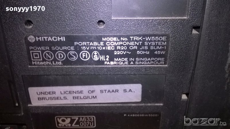 Hitachi trk-w550e made in sinapore-внос швеицария...маркова яка машина...като нова и без липси...тунера е ок и стереото свети...усилвател и колони са идеални...свири превъзходнно...касетите за ремък стандартно...внесена вчера от швеицария-от днес 28.02.22г пращаме със спиди или еконт с преглед и тест след превод на капаро за куриерската услуга поради зачестили некоректни потребители-поръчки само в тук в саита! по телефона и със смс не! краини цени! бартери не правиме! всеки ден нови неща-още над 18000 обяви тук