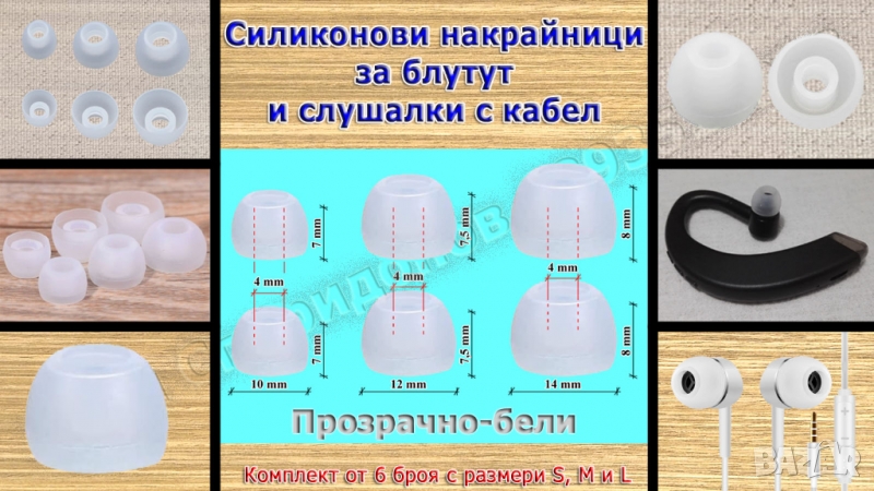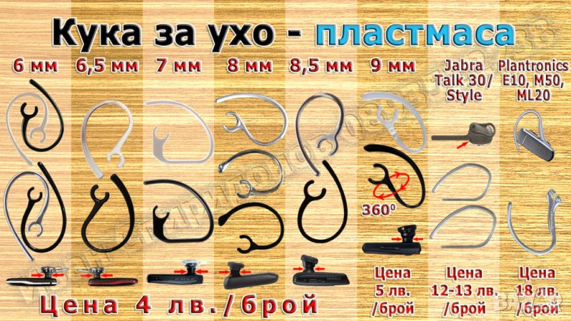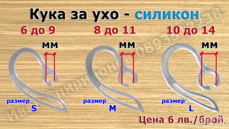 - куки за ухо 5, 6, 6.5, 7, 8, 8.5, 9 и 10 мм за блутут слушалки
