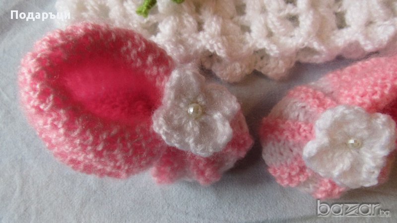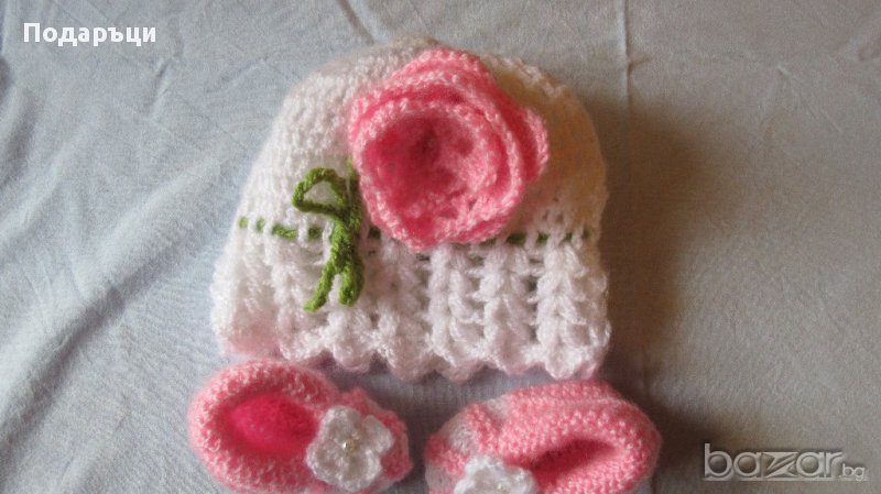 Комплект плетени шапка и терлички за малки принцеси.Комплекта е ръчна изработка.Пишете за колко голямо детенце искате,ще Ви отговоря ако няма налични за колко време ще бъдат оплетени.