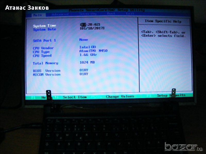 Екрана е счупен, няма го харда заедно с кабелчето към дъното.