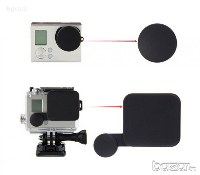 Комплектът включва: 1бр. капаче за обектива на камерата, 1бр. капаче за обектива и бутона на защитния корпус на камерата, 1бр. капаче за портовете на камерата и 1бр. капаче за батерията