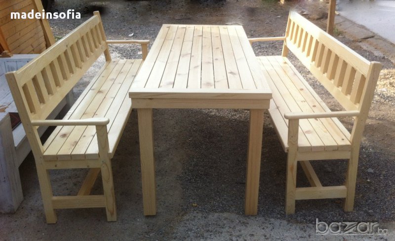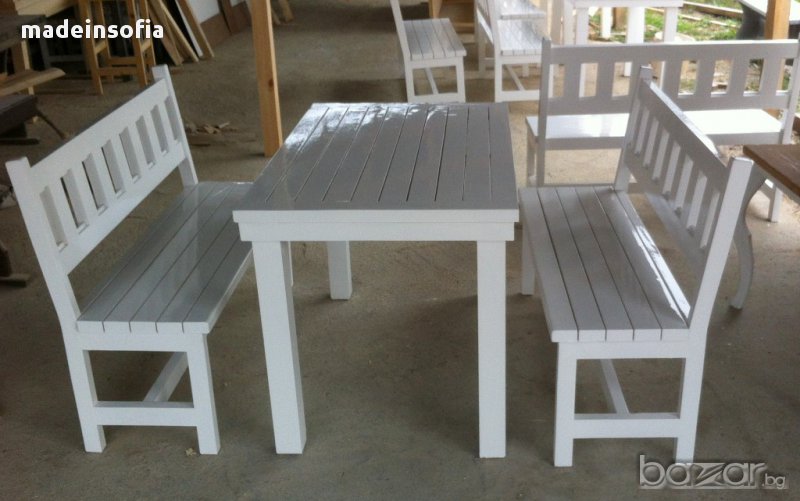 Произвеждаме дървени маси, пейки и столове за заведения и градини. Подходящи за използване на открито. Различни модели и всякакви цветове. Изгодни цени и осигуряване на доставка. Повече информация в сайта ни madeinsofia.eu или на посочения телефон.
