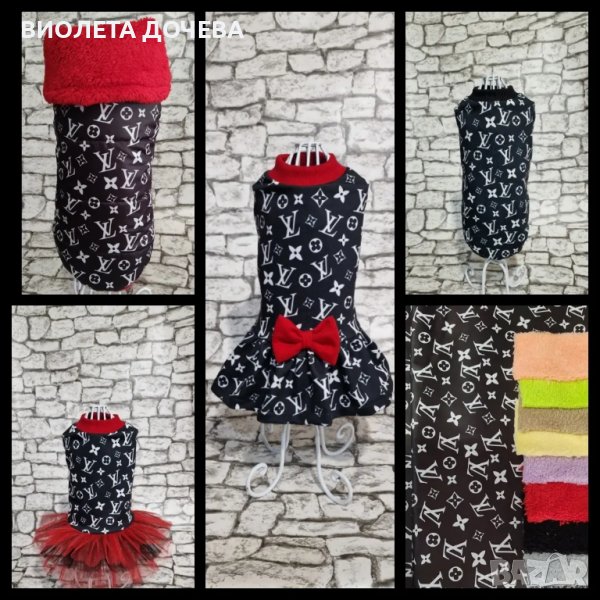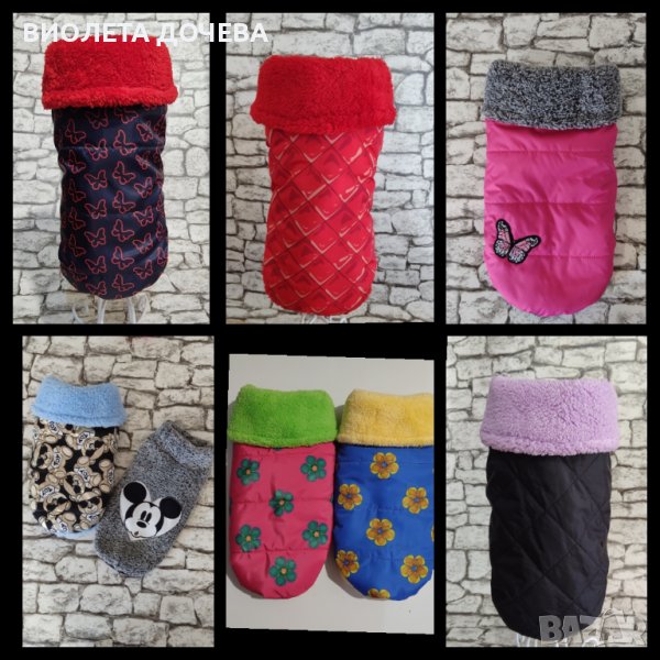 Здравейте, всички дрехи се изработват с размери на кученцата.Цените се определят от модела и размера.Измерете кученцето и ми пишете 😊 Блузки от 17,00-20.00лв .За повече информация на лично съобщение или по телефона.