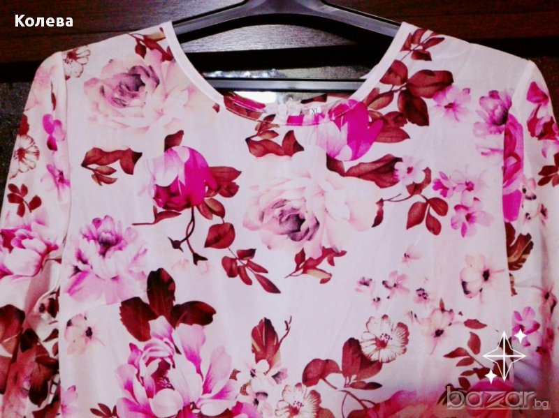 Продавам нова парти рокля във флорален принт. Размерът по етикет е ХЛ, но отговаря на Л.