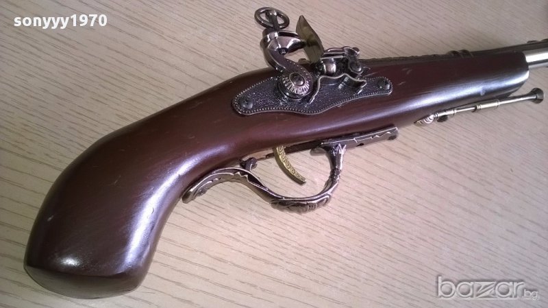 Ретро пищов-запалка-40см-внос швеицария...красив стилен и голям пищов с една цев 40см...за колекция декорация или други интериорни решения или просто с едно щракане на спусъка да си запалите цигарата-от днес 28.02.22г пращаме със спиди или еконт с преглед и тест след превод на капаро за куриерската услуга поради зачестили некоректни потребители-поръчки само в тук в саита! по телефона и със смс не! краини цени! бартери не правиме! всеки ден нови неща-още над 18000 обяви тук