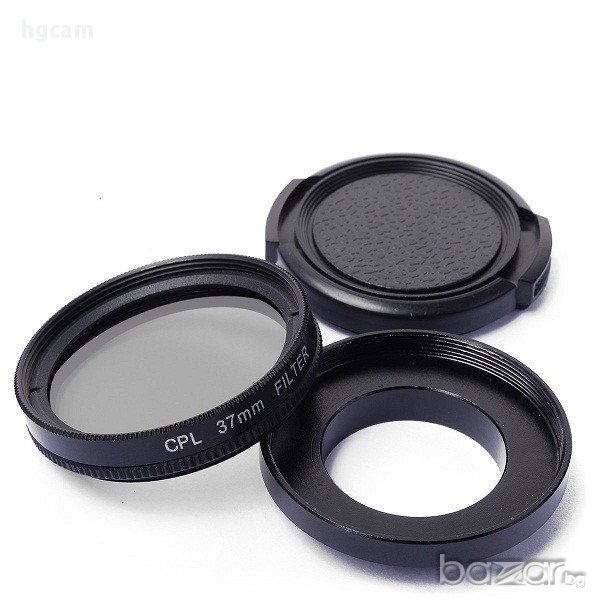 Комплект CPL филтър 37mm, преходник и капак OEM за GoPro Hero 3/3+