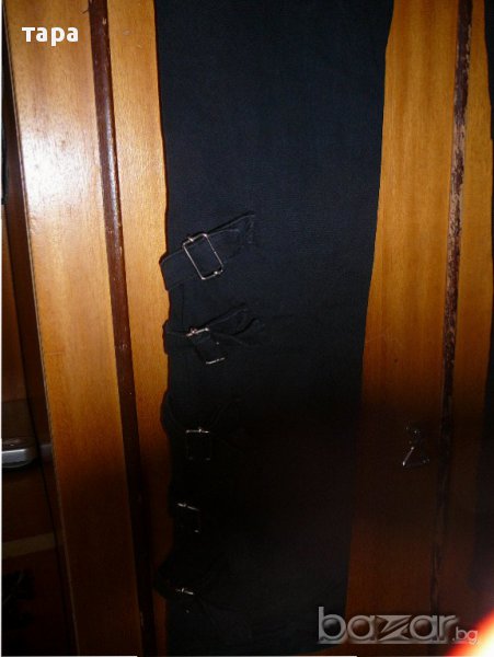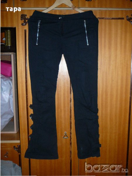 черен интересен дамски панталон с каишки с талия 38 см,ханш 45 см,обща дължина 98 см запазен е и няма забележки