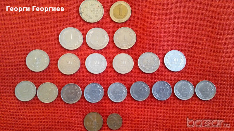 Продавам турски монети, 22 броя, емисии от 1967г. до 1992г., много запазени