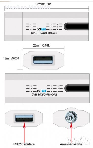 # Комплекта включва тунер + 2 антени (една мини и една подсилена за места с по-слаб сигнал).