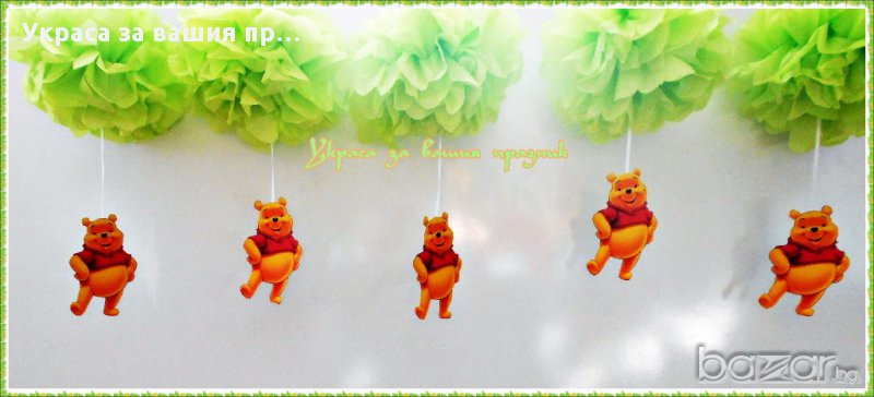топки от тишу с мечо пух за украса на детски рожден ден → Обява 17172125