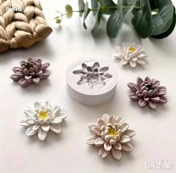 лотос лотус Еделвайс цвете тънки дълги листенца силиконов молд за фондан украса торта декорация → Обява 17181095