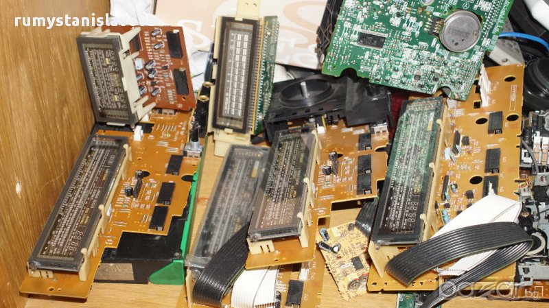 Panasonic Matsushita усилватели ,рисивъри ,предусилватели, някой цд плеари , декове ,DCC ,три и двуглави , ревърсни и еднопосочни -механики, зъбчатки, платки процесори, чипове ,транзистори ,вратички , емблеми, капаци, дънни платки, платка дисплей, платка вход, енкодери, потенциометри,мотори,хибридни основи ,хибридни чипове ,датчици ,нови дисплей , София на място! снимките са на реални налични части ,имам всичко без ляв водач за 808 828 965 ,триглави глави - няма наличност :(