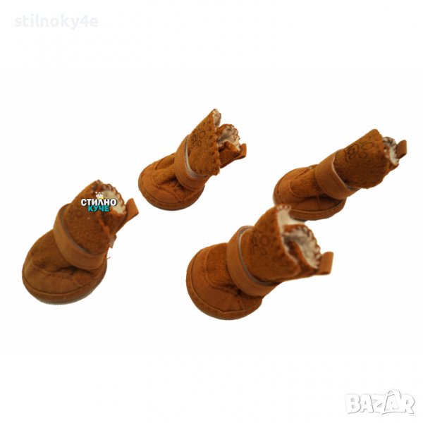 Обувки за куче в кафяв цвят.