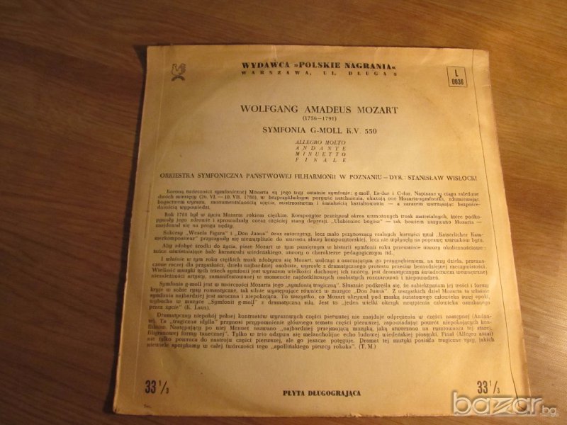Грамофонна плоча Волфганг Амадеус Моцарт - концерт за симфония g - moll K.V.550 → Обява 17201243