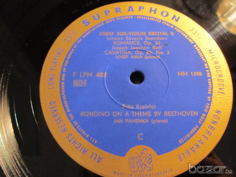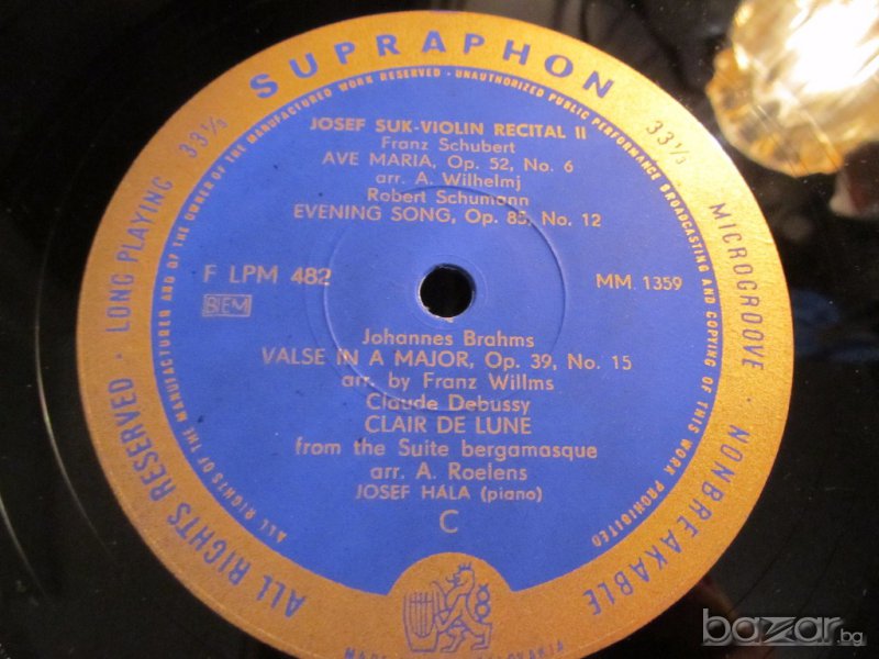 Грамофонна плоча - Violin Recital - Josef Suk - Schubert, Schuman, Брамс, Brahms изд.53 година !