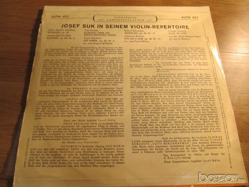 Грамофонна плоча - Violin Recital - Josef Suk - Schubert, Schuman, Brahms издание 53 година !