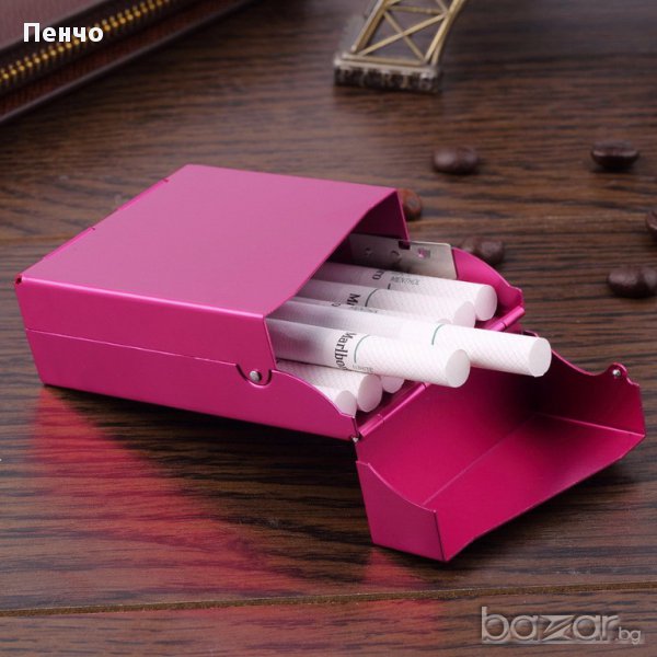 Особености: 100% чисто нови и високо качество. Лек и елегантен дизайн. алуминиев твърд корпус срещу натискане или повреди на цигарите.лесно се отворя и затваря с бутон.