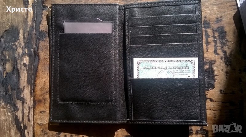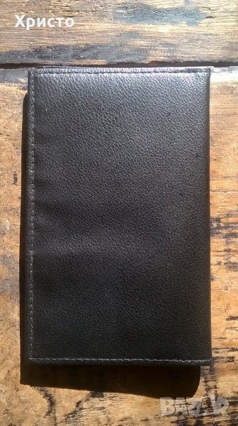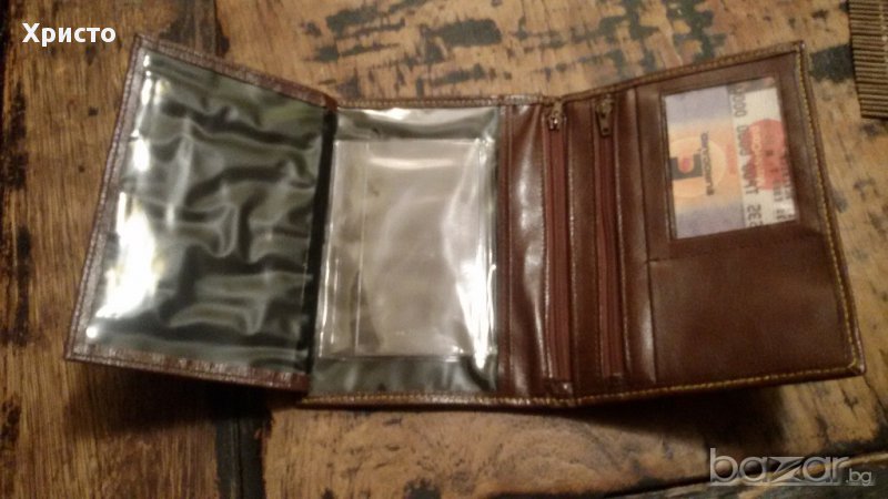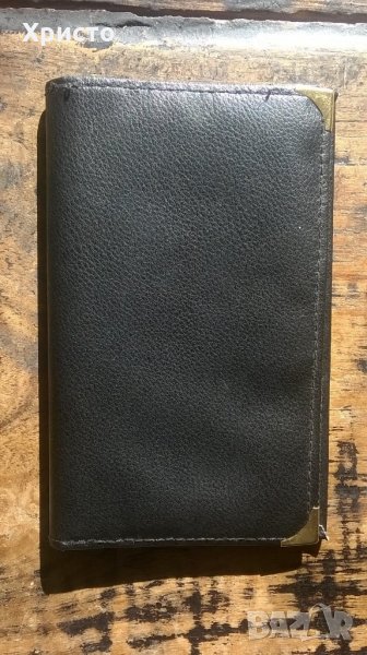 1.Снимки 1,2,3 - размер в затворен вид 11,5 х 16 см, тъмно кафяв, еко кожа и текстил, отваря се в 3 части -6 евро