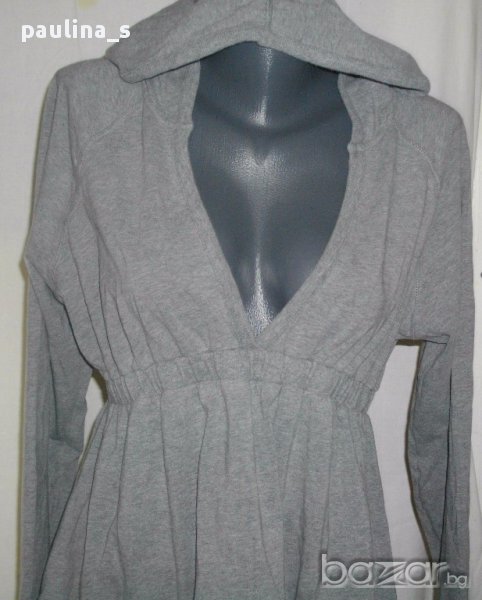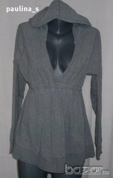 1. L / 2XL "Esprit" Еластичен суичър / туника с качулка, ръкавите са реглан, започват от бието и включват и раменете, набора е точно под бюста.От 97% памук с 3%ликра. При гладене развалих щампата с бранда и размера, описано е.