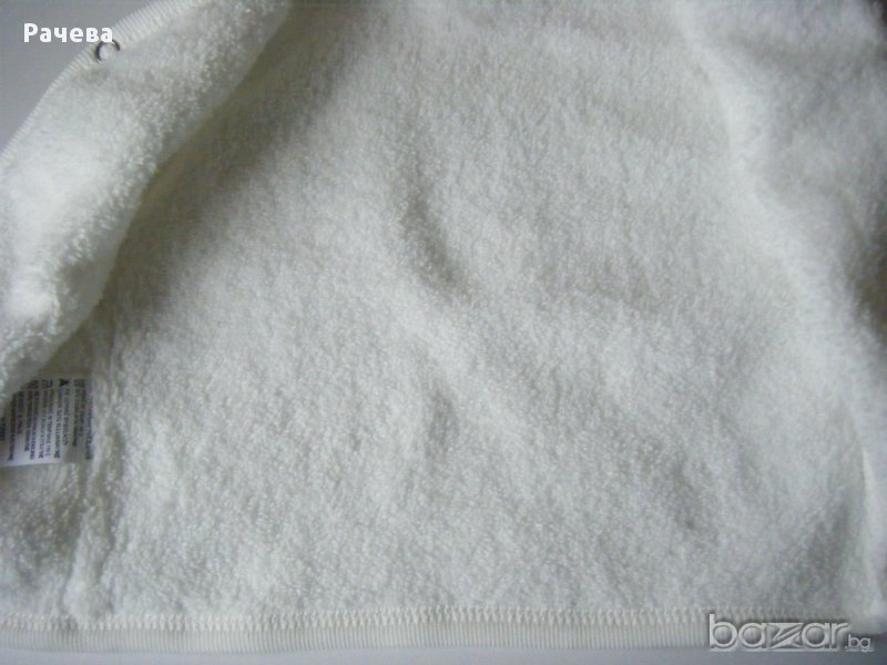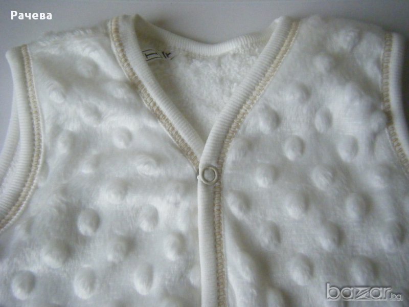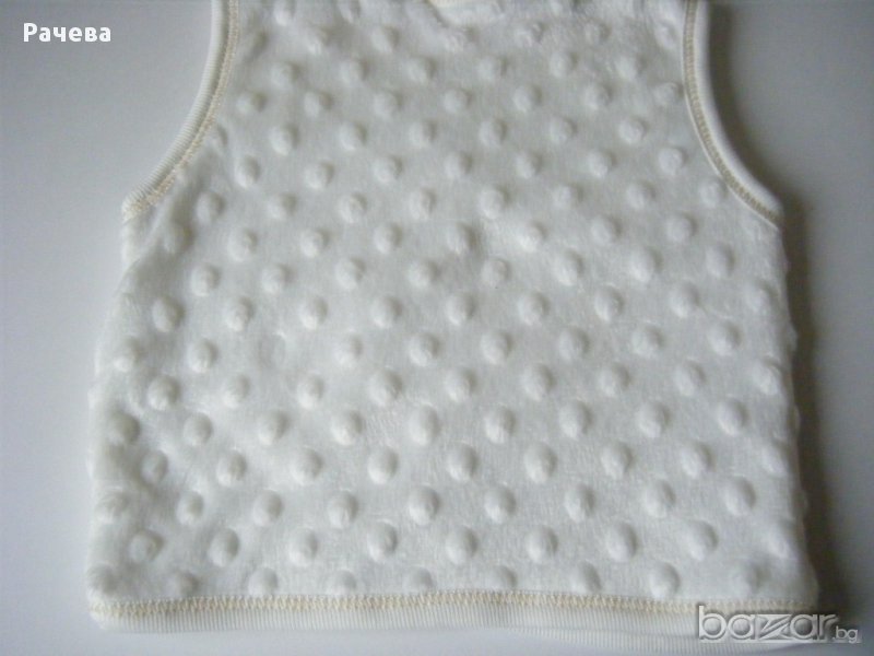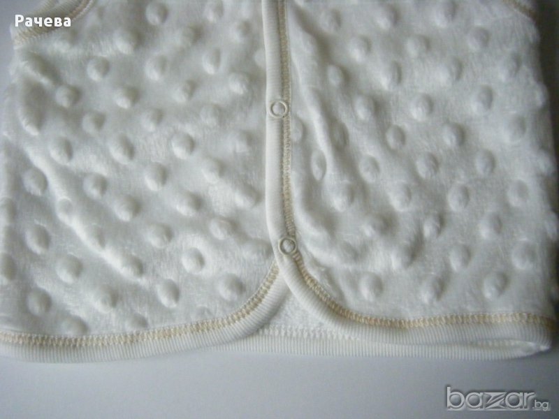 Мекичък бебешки елек хавлия.Цвета е снежно бял а състава е 100% полиестер.Номерата са №2 и №3 който отговарят 6-9месеца и 9-12месеца.Размер №2-д.30см./ш.-27см. и №3-д.33см./ш.29см.