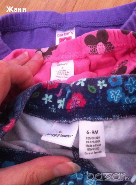 1. Розово панталонче на цветя ( Картърс 6м) дълж.-30,чатал -17, талия-18. Отзад панталончето има две малки джобчета.
