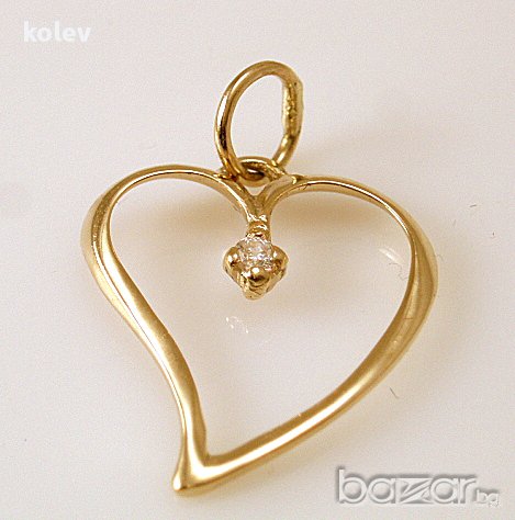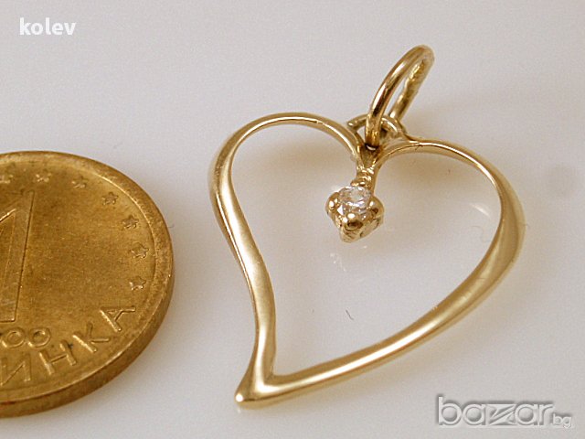 златен медальон сърце и цирконий - 0.80 грама, 14 карата