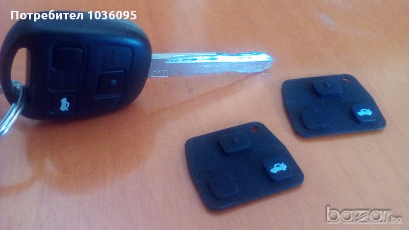 Гумени бутони за дву и три бутонен ключ за Тойота Авенсис и други модели. Стават за двубутонен ключ, като се изреже единия бутон. Цената е за 1 бр. На снимките с двата ключа левия е с нови бутони, десния е оригинален. Продавам и кутийки за различни модели на Тойотата цени от 7 до 10 лв.