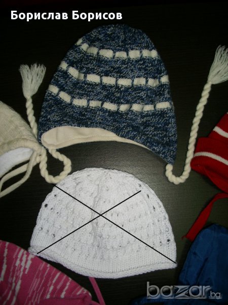 Синята и Жълтеникаво-бялата са плетени с подплата отвътре.