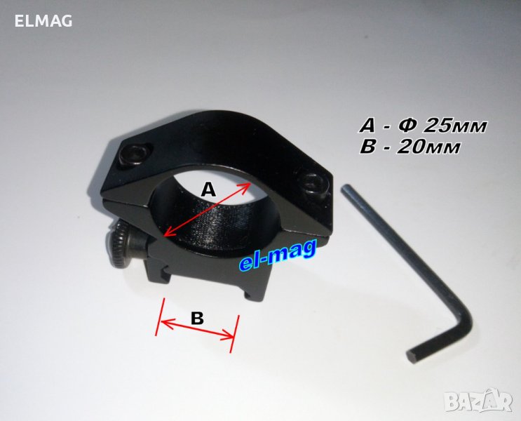 Двата варианта скоби обхващат диаметър - 1" (25,4мм) за монтаж на дълъг прожектор; лазер; оптика; или друго.