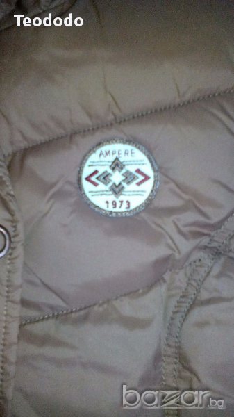 Нов обличан един единствен път. Подарък който ми е голям, цвят много хубав светло кафяв, размер XL. Забележка има качулка но не мога да е намеря.