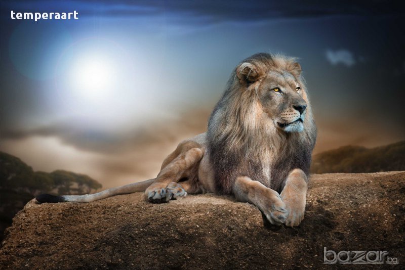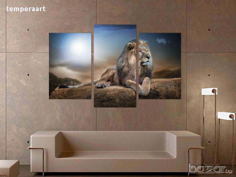 Картина лъв, картинно пано, картина животни, канава, декоративно пано от части № 094